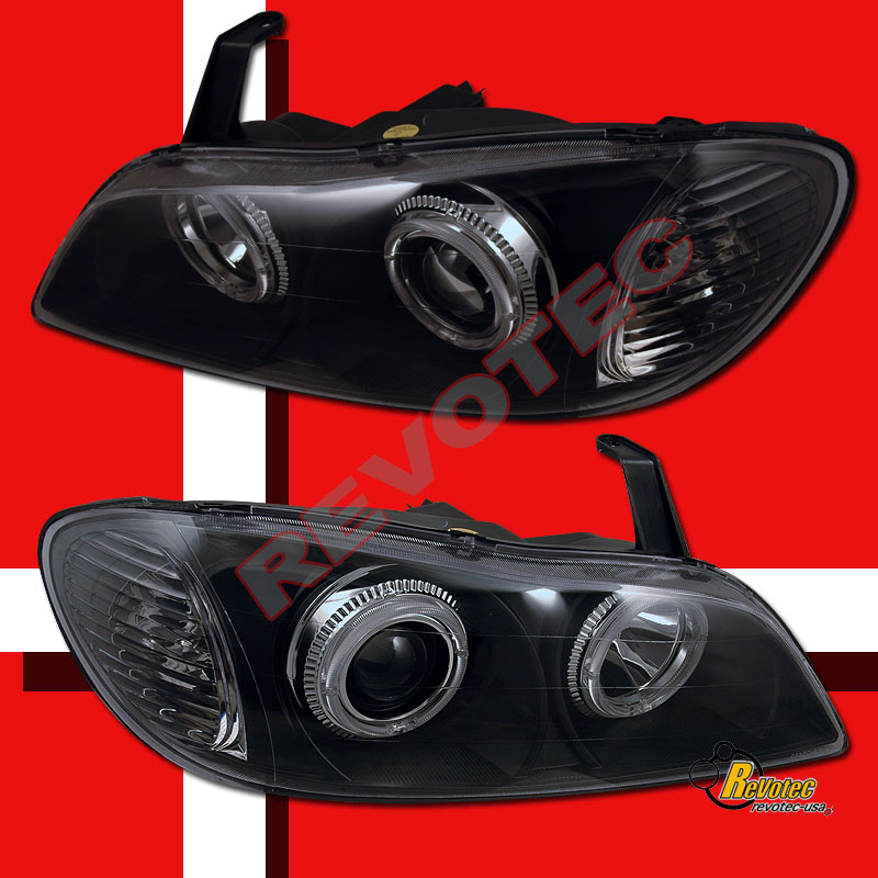 Dual Halo Angel Eyes Black Projector Headlights For 2000